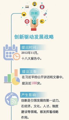 自党的十八大报告提出实施创新驱动发展战略以来,在习近平的公开讲话与文章中,“创新驱动发展战略”已出现近百次;在五大发展理念中,创新排在第一位;“十三五”规划纲要第二篇,即是“实施创新驱动发展战略 ”;今年政府工作报告中,“创新”一词出现了约60次;今年年初,《习近平关于科技创新论述摘编》出版……可以预见,创新驱动发展战略意义非凡。