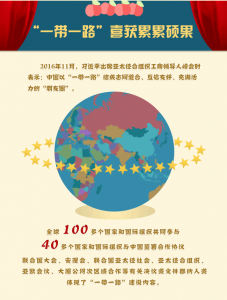 央视网消息:2013年,习近平主席提出“一带一路”伟大构想,引起世界各国广泛共鸣。经过近四年的扎实推进,目前,“一带一路”倡议已落地生根、开花结果,一幅惠及世界的蓝图正笔笔绘就、徐徐展开。在此过程中,习近平主席在国内外各种场合多次发表重要论述,他对“一带一路”核心内容如何阐述?“一带一路”为全球经济发展注入怎样的新动力?各方又给出了怎样的评价?一张动态图解告诉你。