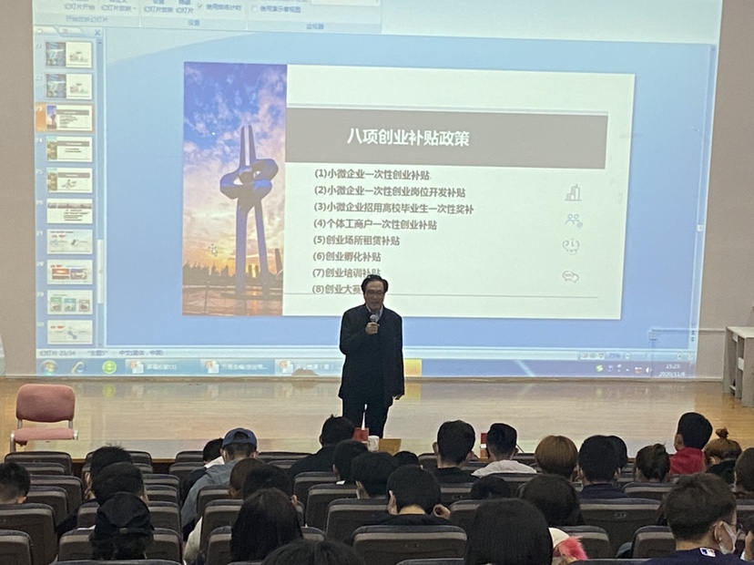 济南市人社局副局长、济南市公共就业服务中心主任窦进科到校授课,窦局长就当前就业创业形势和就业创业政策和同学们进行了深入交流。整个课堂结合国际国内环境,深入解读当前就业创业形势,系统介绍了济南市在校大学生和创业者创业担保贷款、小微企业一次性创业补贴和岗位开发补贴、就业创业培训及高技能人才政策等一系列就业创业扶持政策,讲解了留济就业创业的优势,积极鼓励大学生留济就业创业。