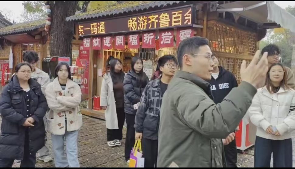 活动中,同学们认真聆听马金满老师的详细讲解,他们在感受传统文化魅力的同时,积极思考如何将这些古老的智慧与现代的创新创业理念相结合。首先同学们来到了千佛殿,其中四十罗汉被近代文学家梁启超誉为“海内第一名塑”每尊罗汉都惟妙惟肖,体现着个性与特点。随后同学们一起爬跌宕起伏的红门大佛山,心中充满了期待与挑战。同学们相互扶持,共同迈过崎岖的山路。每一步的攀爬,都感受到了团队协作的重要性。当有人疲惫时,同学们的鼓励和帮助就像一股强大的动力,推动着他们继续前进。接着,马老师和同学们一起去品尝素面,面条粗细均匀,火候恰到好处,香气四溢。
