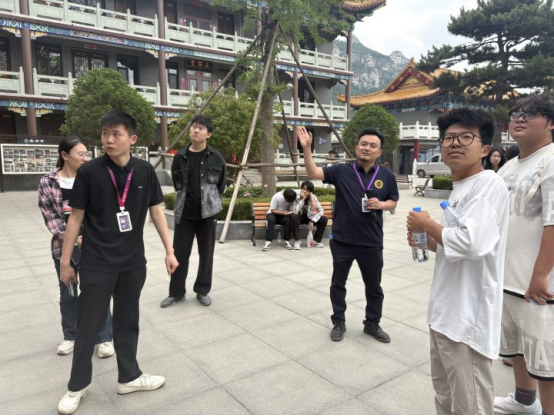 活动中,师生们分组行动,先后参观山门与天王殿、大雄宝殿。在山门与天王殿,大家仔细观察 “三门” 对称布局、歇山顶建筑形式等,解读建筑等级规制与美学价值;辨识唐代风格造像艺术特征,分析其民俗寓意。在大雄宝殿,师生们分析 “前朝后寝” 建筑理念,对比不同时期造像艺术风格演变,领略唐代建筑营造智慧与文化融合特征。
