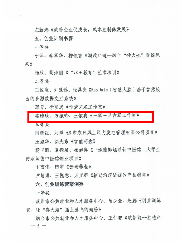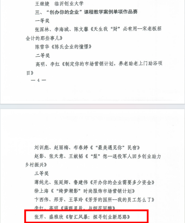此次山东省创业培训典型案例展示赛经过初赛的激烈角逐和省赛专家严格评审,山东圣翰财贸职业学院在“创办你的企业”课程教学案例单项作品赛道中参赛项目《智汇风暴:探寻创业新思路》荣获省级三等奖,在创业计划书赛道中参赛项目《一琴一品古琴工作室》荣获省级二等奖。