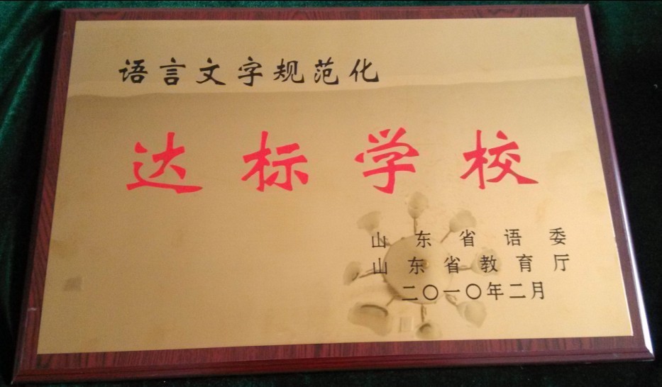 在日前召开的2013年度全省语言文字工作会议上,我校荣获“语言文字规范化达标学校称号”,近几年来,我校以创建省市级语言文字规范化示范校为抓手,加强了学校的语言文字的规范化使用,并将这项工作与推进教育教学工作有机结合起来。我校历来注重把语言文字工作列入学校议事日程之中,大力抓好宣传工作,将普及普通话和用字规范化作为学校管理的重要工作来抓,把抓好语言文字规范化工作作为提高学校教育的教学主渠道来对待。通过扎实的基础性工作,全校师生的语言文字规范化程度显著提高。与此同时,我校又有多名教师获得了省级语言文字等级测试员称号,所有教师均达到了相应的普通话等级证书的标准要求,成功地创建了山东省语言文字规范化示范校。这标志着我校的语言文字工作正在向更高的水平迈进。