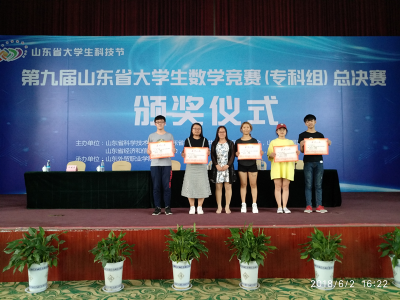 2018年6月2日,第九届山东省大学生数学竞赛(专科组)总决赛在山东外贸职业学院举行,山东圣翰财贸职业学院共有5名同学参加总决赛。在高等数学教研室教师精心指导下,经过努力拼搏,来自汽车工程学院的高振同学获得一等奖,信息工程学院马志超、冯美丽,财贸学院冯晓青、赵强男获得二等奖。另外,根据赛事安排,在分赛场决赛中信息工程学院王国正、汽车工程学院田长明、建筑工程学院张晓钰、财贸学院宋文莉、吴文娟五位同学获得三等奖,为学校赢得了荣誉。