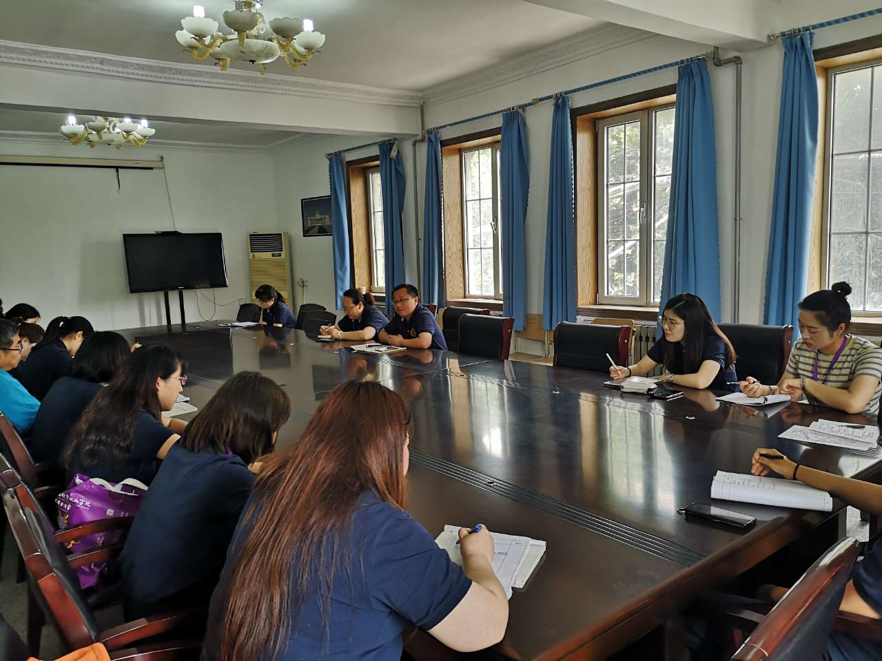会上,教务处杜敏老师针对前两周开展的督导听课活动情况进行了总结,指出了在课堂管理与教师授课中的问题,并就如何提高学生学习效果提出了自己的想法与建议。张处长对放假前、暑假两个阶段的工作进行了安排,并对授课教师提出了“总结与改进提高齐步走”的要求,不能只总结不改进。陈浩慧主任结合各阶段的安排进行了进一步的解释说明,并针对教学过程中存在的问题同与会人员进行了交流。