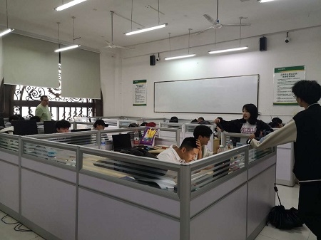 教务处工作人员分别现场查看了各赛项的训练情况,听取了指导老师的工作汇报,了解了目前大赛的训练情况、备赛计划以及后勤保障等工作,并与备赛学生进行了交流。