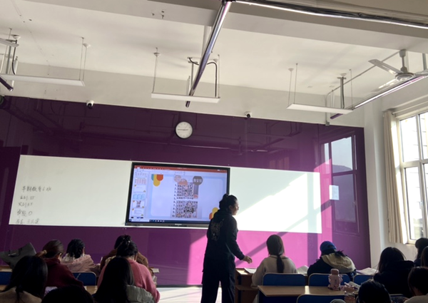 外聘教师讲授的课程为《婴幼儿亲子活动设计与指导》,教师基本功扎实,教态自然大方,备课扎实认真,组织到位,思路清晰。所授课程第一节以理论讲解为主,主要讲解10-12个月婴儿发展水平、特点以及活动设计的要点与注意事项。第二节课以学习练习为主,学生以设计亲子活动的方式检测知识点是否掌握牢固。