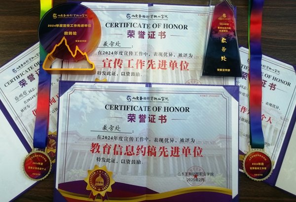 3月20日,在学校宣传思想文化工作会议上,教务处荣获2024年学校“宣传工作先进单位”、“教育信息约稿先进单位”。
