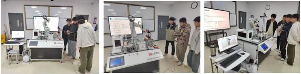 实训环节,同学们以小组为单位分工协作。编程员专注地操作示教器,精心规划机器人的运动轨迹,编写精确的控制程序;仿真员通过专业软件对程序进行虚拟验证,确保运动路径的合理性和安全性;操作员则在确保安全的前提下,将验证通过的程序加载到实体机器人上运行测试。