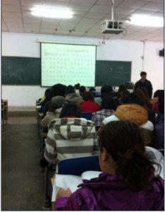 新学期伊始,为提高全体教师的授课水平,提高教学质量,工商管理学院十五名老师于2012年2月21日上午在A5-01教室听取了毕明建老师的公开课——《旅游心理学》。毕老师备课充分认真,课件制作精美,讲课生动有趣,浅显易懂,通过测试题与学生进行互动,整堂课气氛热烈,同学们专心致志,聚精会神,在愉快的气氛中学到知识。