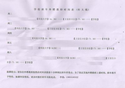 2011-2012学年第二学期班车安排