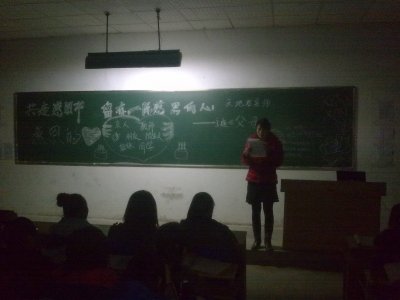 为了营造气氛我们熄灭了教室里的灯光,点燃了寓意父母的蜡烛,在感伤的音乐里辅导员郑老师给大家读了两片关于感恩的故事,读到伤心处老师的声音哽咽了,同学们也跟着一起落泪,颗颗感动的泪水涌出我们对父母的感恩之情。