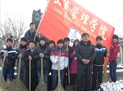 2011年11月30日,济南的第一场雪给大家带来了喜悦的同时也给大家带来的不安全因素,路滑容易使人摔跤。工商管理学院学生会成员在团委书记杨朝霞老师的带领下,自觉集合在一起,进行校园扫雪活动,为我校师生扫清积雪,安全行走。