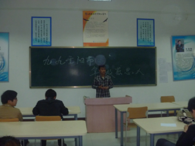 “百善孝为先”是中华民族的传统美德,作为炎黄子孙,自然应当继承传统、弘扬传统。 在重阳节来临之际,为了唤起同学们对重阳的重视、弘扬中华民族尊老爱幼的传统美德,进一步营造爱老、敬老、助老的良好氛围,10月23日晚,2011级创业与就业教育试点班在F507开展了以“九九重阳节,争做感恩人”的主题的班会活动。