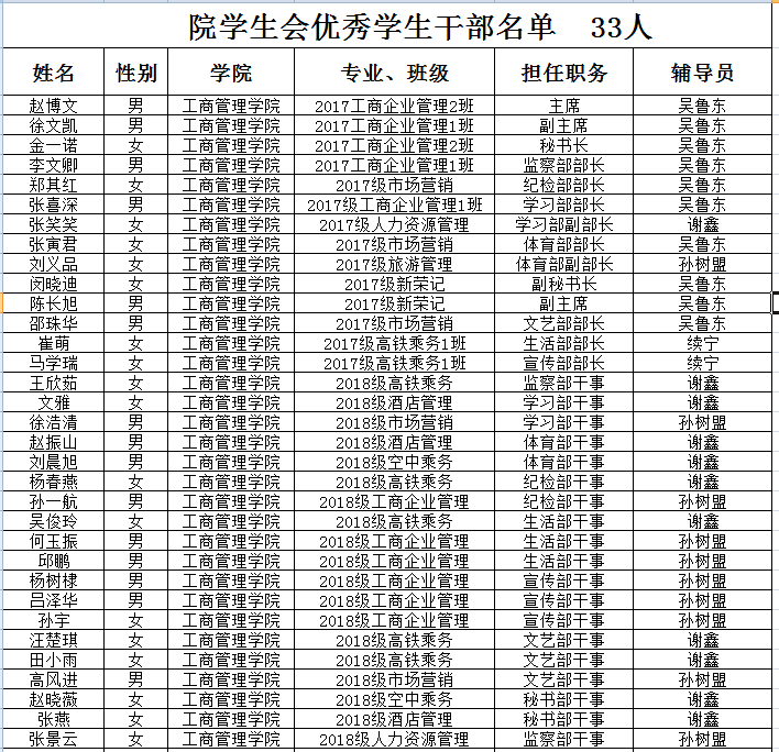 为认真贯彻党的教育方针,加强素质教育,加强学生的思想政治工作,深化学校精神文明建设,促进学生德、智、体、美、劳全面发展,树立良好学风、班风、校风,发现和培养热爱祖国、学习刻苦、团结同学、品质优良的优秀学生,使学生干部成为合格的社会主义事业的建设者和接班人,根据我校《山东圣翰财贸职业学院优秀学生干部评选办法》,工商管理学院各班级有序开展“优秀学生干部”、“优秀班干部”的评选活动。
