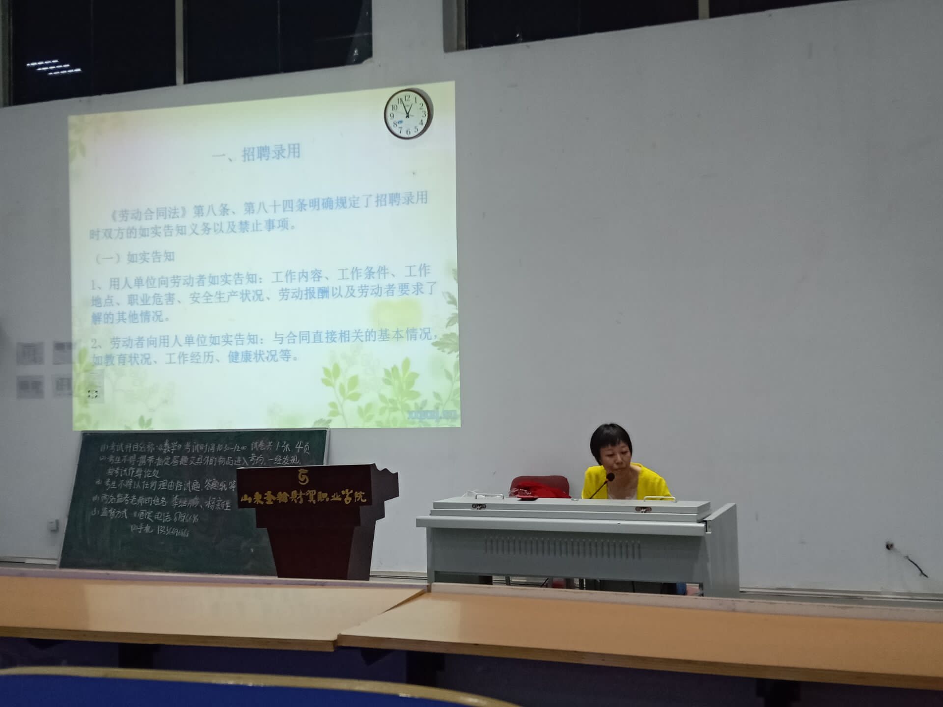 随后,吴瑜瑜老师就“劳动法的适用与风险规避”为主题展开演讲。分别从:招聘录用、合同签订的时间和内容、合同签订的试用期和违约金以及无效合同的界定、无固定期限劳动合同等方面展开介绍,全面讲解了企业在招聘员工过程中可能遭遇的法律风险,同时提醒同学们提升个人的法律风险意识,为将来的稳健发展保驾护航。通过此次讲座,同学们从中学到了许多关于劳动法律的知识,在日常工作中,与法律结合起来,为以后的生活和工作打好基础。