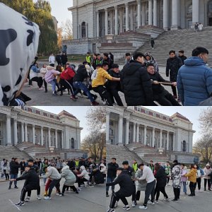 为了丰富学校学生们的课余生活,增强学生们的团结一致能力与班级凝聚力,学校组织了一场全校性的拔河比赛,11月28日中午12点50分,工商管理学院与艺术学院,建工学院,五年制学院在F楼下进行了学院拔河对抗赛决赛,工商管理学院杨朝霞书记,谢鑫老师、褚静静老师,孙树盟老师,续宁老师,吴鲁东老师以及工商院的各专业班委、18级学生会干部、19级学生会干事莅临比赛现场。