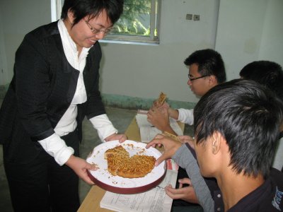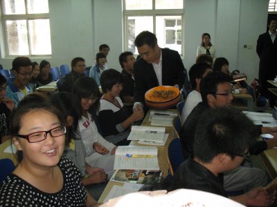 金秋送爽,丹桂飘香。9月22日是我们的传统佳节仲秋节,在仲秋节到来之时。刘岗副校长带领教务处孔令梅副处长、就业与创业指导中心司赞主任、工商管理学院蒋元涛院长、创业与就业教育试点班辅导员杨朝霞老师及学校其他老师,到创业试点班对全班学生及优秀教师顾俊良教授进行了慰问,并带来了仲秋月饼,学生们吃着香甜的月饼,露出了甜蜜的笑。