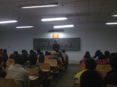 动员首先是在我院最为活跃最具活力的市场营销专业开讲,教室早已布置完毕,黑板上赫然写着“招生给力,我们更给力”几个大字,体现出了市场营销专业招生的积极性。冯老师先是活跃了一下现场气氛,接着从我校发展,我校就业情况,招生的意义和对学生自身发展的影响讲起,并宣读我院关于促进学生参加工作的意见,其中涉及到学生最关心的毕业答辩、留校、奖助学金评选、优秀毕业生选拔、入党等事项,在学生中引起很大反响,他们普遍意识到,今年是我校招生“动真格”最“给力”的一年。冯老师动员完毕,学生们提出了很多关于招生的问题,冯老师一一详细解答。