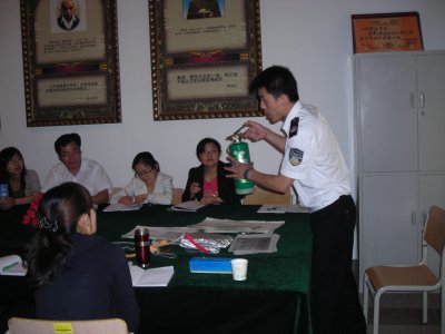 在培训中展刚老师首先讲解了消防知识的重要性,提高大家的消防安全意识,通过报纸、图片等手段形象的说明火灾的危害性。展老师重点讲解了火灾逃生的技巧和消防器具的使用,通过实际演示让老师们进一步熟悉了灭火器的使用,掌握了灭火器的分类和使用范围。