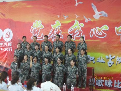 红歌代代传、歌声颂祖国。为隆重纪念中国共产党建党90周年,歌颂党的伟大成就,激发我校教师热爱祖国、热爱党的革命情怀,陶冶革命情操,建设和谐校园,2011年6月21日上午九点我校在D5报告厅开展了大型红歌歌咏大赛。