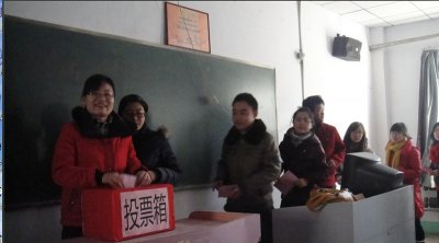 大会由杨朝霞老师主持,首先让学生会成员清点了到场人数,然后由朱颖老师宣读《选民直接选举人大代表选举办法(草案)》及公布了总监票人、监票人、总计票人、计票人。举手表决,通过此选举办法及人员分工。检查完票箱后,开始发票、写票。最后,全体师生投出自己慎重的一票,以1060赞成票一致推选我校副校长刘广耀同志为人大代表。(工商管理学院)