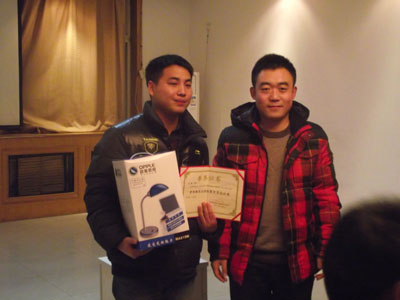 大会上,蒋元涛院长代表学校发言,他充分肯定了本次实习,对坚持到最后的同学表示祝贺,对提供本次拓展实习的阳光海天表示感谢。随后由蒋元涛和姜庆军为拓展实习表现优秀的同学颁发了荣誉证书和奖品。表彰会上,同学们纷纷发言,表示收获甚多,体会到了相互尊重的重要性和微笑的力量,有的同学还发言表示体会到了北漂一族的辛酸,有的同学站在了公司发展的高度,发表了自己的看法。同学们的发言得到了公司领导和学校老师的肯定。