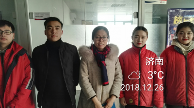 20181227日,工商管理学院辅导员褚静静来到百世快递看望实习生。目前共有十一名学生在百世快递工作,其中在总部的共四名。