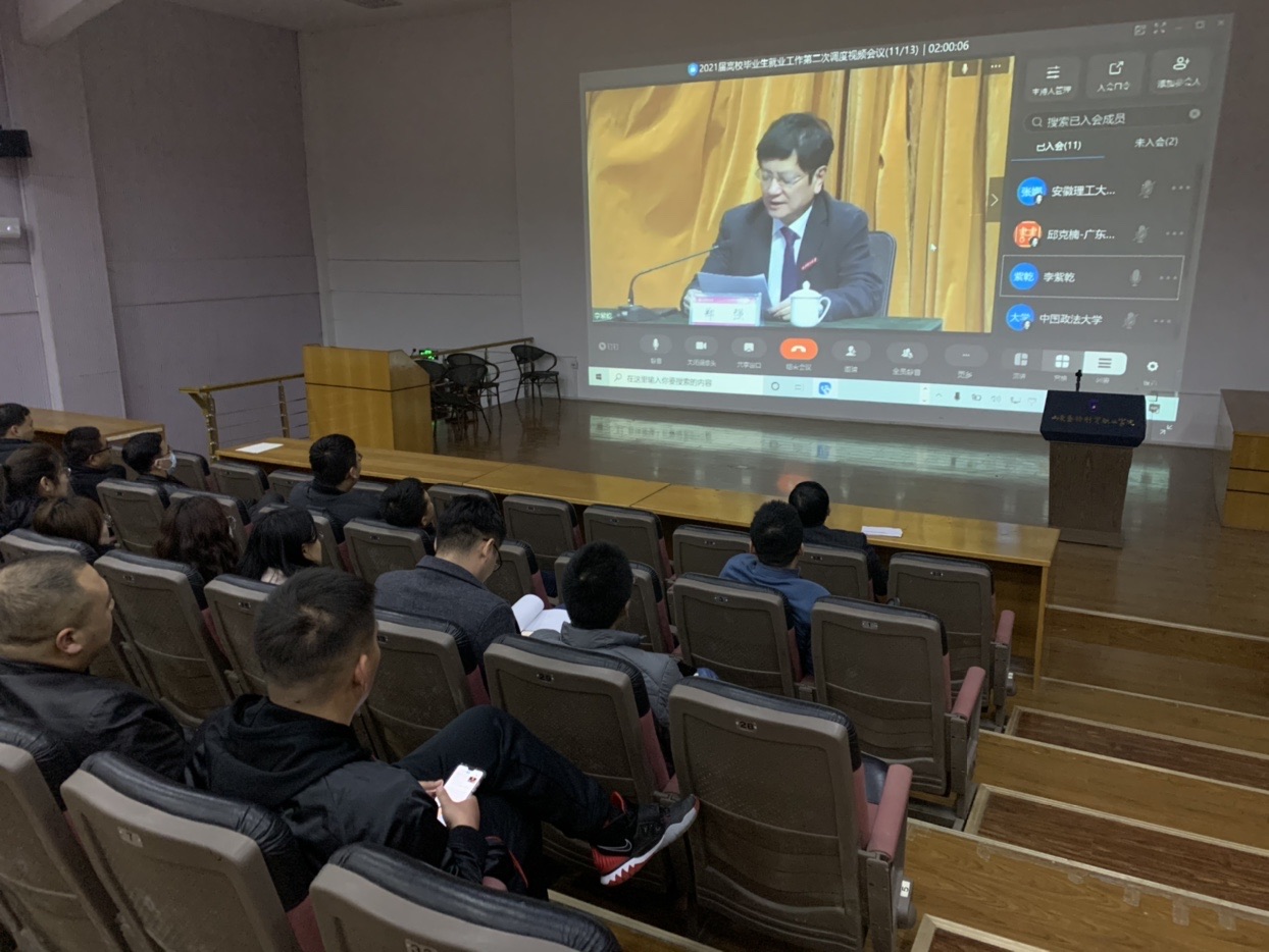 3月16日中午,工商管理学院工商管理学院院长赵君利、副院长房其林,实习就业负责人徐晓龙在吉纯楼参加教育部“2021届普通高校毕业生就业工作第二次调度视频会议”。会后,赵君利院长针对去年的就业工作作了简要总结,指出了成绩与不足;就下一步的主要工作作了部署,布置了当前的几项工作任务;提出了就业率与就业质量工作目标;要求大家克服困难,总结经验,积极工作,落实本届毕业生每一位学生的就业信息,多方努力,通过线上线下多种形式为毕业生提供就业指导与就业招聘岗位信息服务,保障每一位毕业生都能满意就业,为就业稳定,为经济社会发展做出贡献。