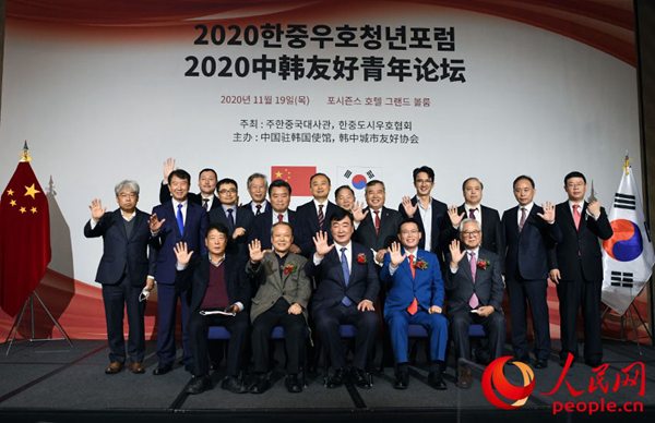 11月19日,“2020年中韩友好青年论坛”在首尔线上线下成功举行。中国驻韩国大使邢海明、韩国前国务总理李寿成、韩中城市友好协会会长权起植和中韩两国青年代表在线上线下共同出席。