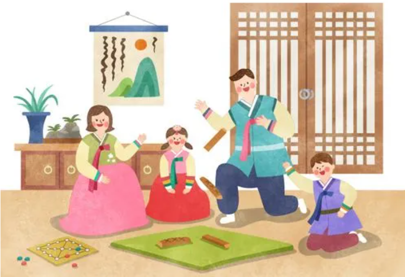 韩国人过春节,农历正月初一要返乡祭祖,当天他们要穿上新年服装或韩服举行祭祖仪式,祭祀结束 会还会一起吃顿饭,这其中不可缺少的是年糕汤,代表又增长了一岁,用餐完后晚辈会向长辈行大礼拿压 岁钱。