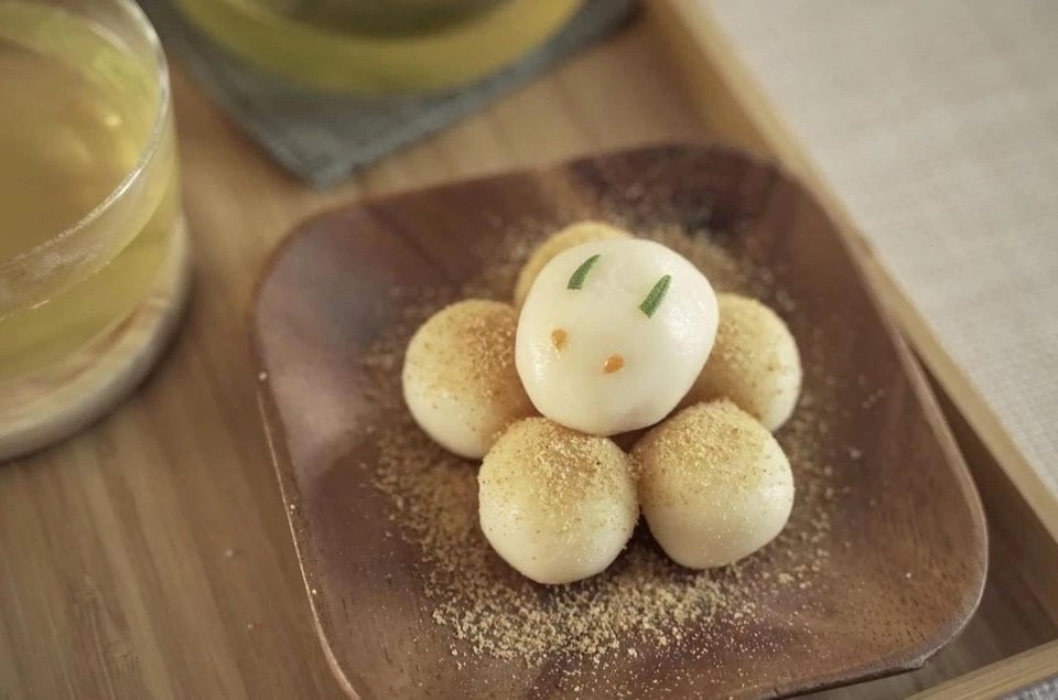 一般日本家庭会在家中摆放月见团子及栗子等用于答谢大自然的恩惠。月见团子是和菓子的一种,由糯米粉制成,软糯香甜。有馅的团子多是红豆,淋上甜酱油或蘸黄豆粉吃。