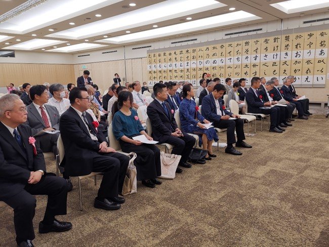近日,“若山牧水和歌名作书道交流展”开幕式在位于东京的日中友好会馆举办。中国硬笔书法协会主席张华庆、中国驻日使馆公使衔参赞王琳以及日本前首相福田康夫、外务省副大臣武井俊辅、众议院议员绪方林太郎、若山牧水纪念馆馆长伊藤一彦等中日两国政治、经济、文化界代表超过100人出席开幕式。