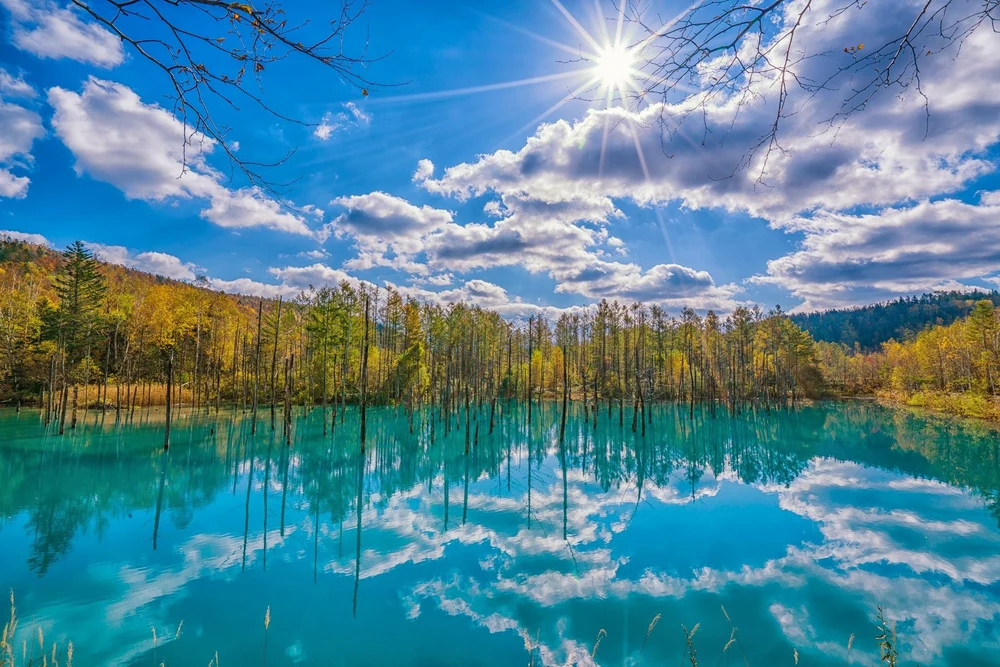 你也许见过水池,但一定没有见过青色的水池!白金青池是北海道的一个热门旅游景点,它是在 1989 年十胜岳火山喷发之后形成的,水池呈青色,放眼望去就像一块巨大的青玉。随着季节的变化,青池的池水会呈现出不同的颜色,当地居民和自然爱好者纷纷慕名而来,一探究竟。