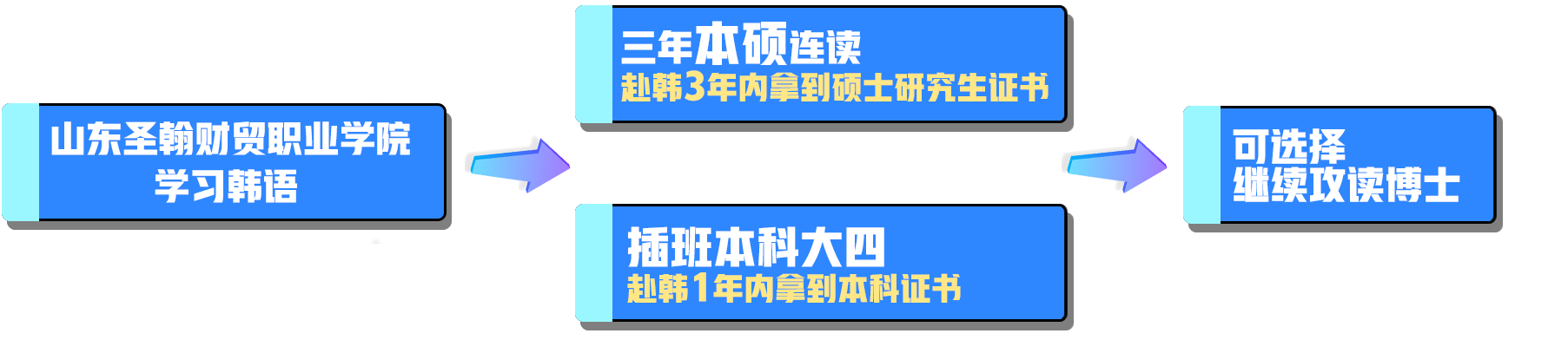 山东圣翰财贸职业学院坚持国际化办学理念,致力于培养具备国际化视野的高端技术技能型人才。学校国际交流学院下设应用英语、应用日语、应用韩语等多个专业,并积极开展国际交流与合作,先后与日本、韩国、美国、加拿大、澳大利亚等10多个国家20余所知名院校建立友好关系,包含专升本、专升硕、本硕连读、短期研学等多种形式的交流项目,国际化办学的广度和深度不断拓展。