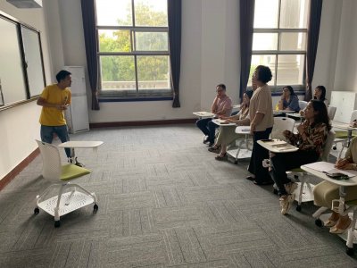 Jesse老师的教学风格激情奔放,展现出浓郁的美式交流风格,他设计了简单的话题,使在座的每一位老师都抛开拘谨,开口用英语进行了交流,课堂氛围十分轻松愉快。