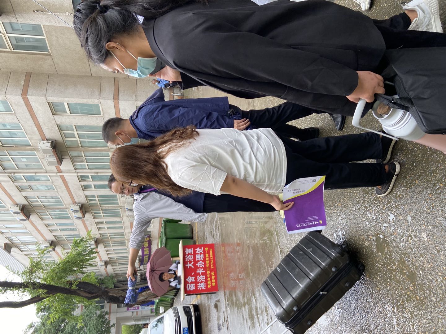 (国际交流学院老师与志愿者们正在做迎新准备)
