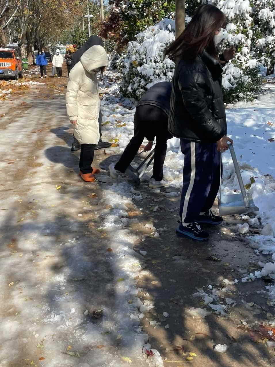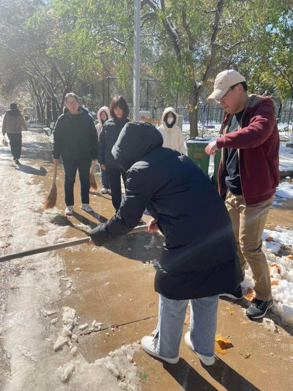 一场大雪降临济南,一夜之间,城市银装素裹、晶莹剔透,绿树成荫的校园也瞬间变成了童话世界般的“冰雪奇缘”。但是,景色虽美,厚厚的积雪却给师生出行造成了诸多不便。 国际交流学院组织本院英日韩三个专业学生处,在负责教师的带领下开展了热火朝天的扫雪活动。