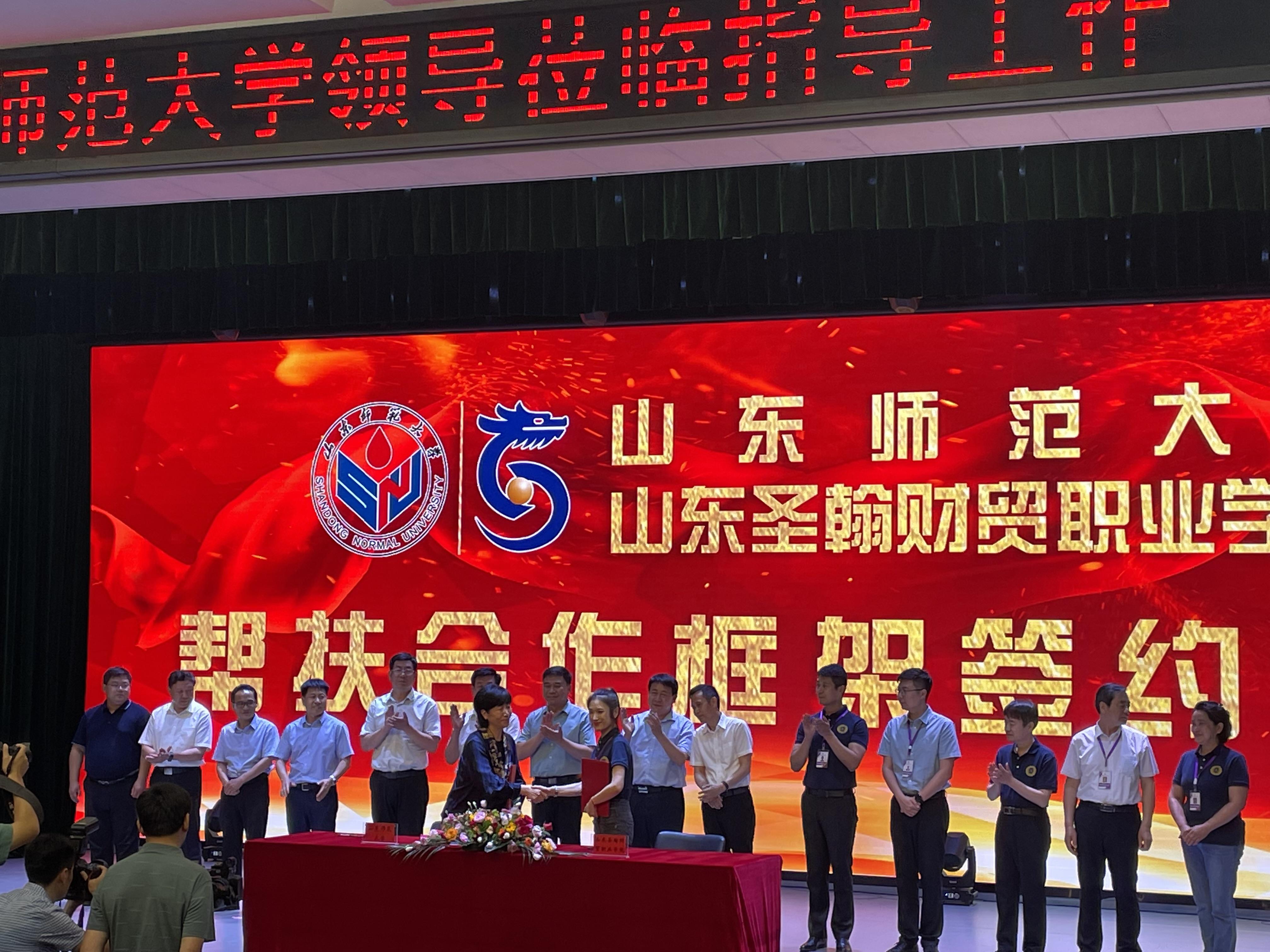 6月24日下午,山东师范大学与山东圣翰财贸职业学院在山东圣翰财贸职业学院举行了帮扶合作框架签订仪式。