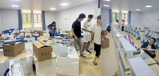 实训室建设过程中,健康学院教师积极参与。器材设备到达后,在没有器械厂家安装的情况下,学院口腔医学技术实训室建设负责人陈淑梅老师自学组装流程,组织在校学生搬运组装器材,完成实训室器材安装工作。