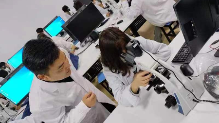 近期,健康学院医学检验技术专业的实训课程已开启,老师带领本专业学生在显微互动实训室就如何使用显微镜进行了基本训练。教学过程中,教师采用边教学边示范的方法,从取镜到安放、显微镜对光、观察玻片标本、显微镜的整理等一系列操作进行讲解示范,学生自己动手操作留下了深刻印象,较好地掌握了操作步骤和注意事项,培养了学生动手实践技能。