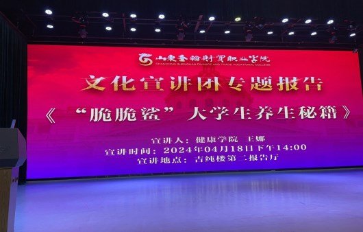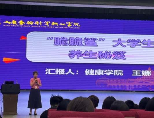中医药文化凝结着中华民族近千年来的知识经验,有着独特的民族特质和精神追求,是中华文化的伟大创造。中医治病、防病及健康养生的医学理念是中医药文化的外在表现,中华优秀文化的人文智慧是中医药文化的内在价值。 山东圣翰财贸职业学院本期文化宣讲活动是由健康学院王娜老师带来的《“脆脆鲨”大学生的养生秘笈》专题报告。本次报告在吉纯楼第二报告厅举行,健康学院和五年制高职学院学生参加,旨在提升大学生健康素养,促进大学生们树立健康观念,提高健康知识水平。