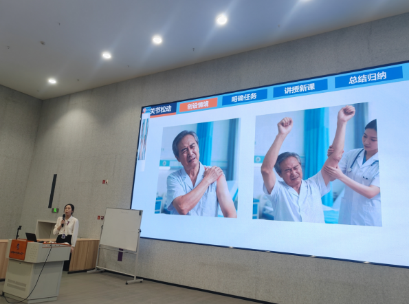 毕乙方则带来“康复治疗技术”课程。她立足康复医学的核心概念,通过对比“病愈”与“功能恢复”,帮助学生理解学科目标。毕乙方以其沉稳大气的教风、清晰缜密的逻辑,完美诠释了何谓“由浅入深”的教学艺术。她成功地将零散的技术知识点串联起来,整合成一个针对复杂临床问题的系统性解决方案,极大地锻炼了学生的临床思维能力和综合应用能力,实现了从“知其然”到“知其所以然”再到“知行合一”的飞跃。