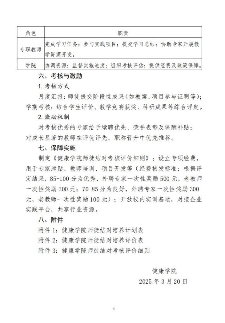 健康学院2024-2025学年第二学期师徒结对实施方案(圣翰健发[2025]2号)