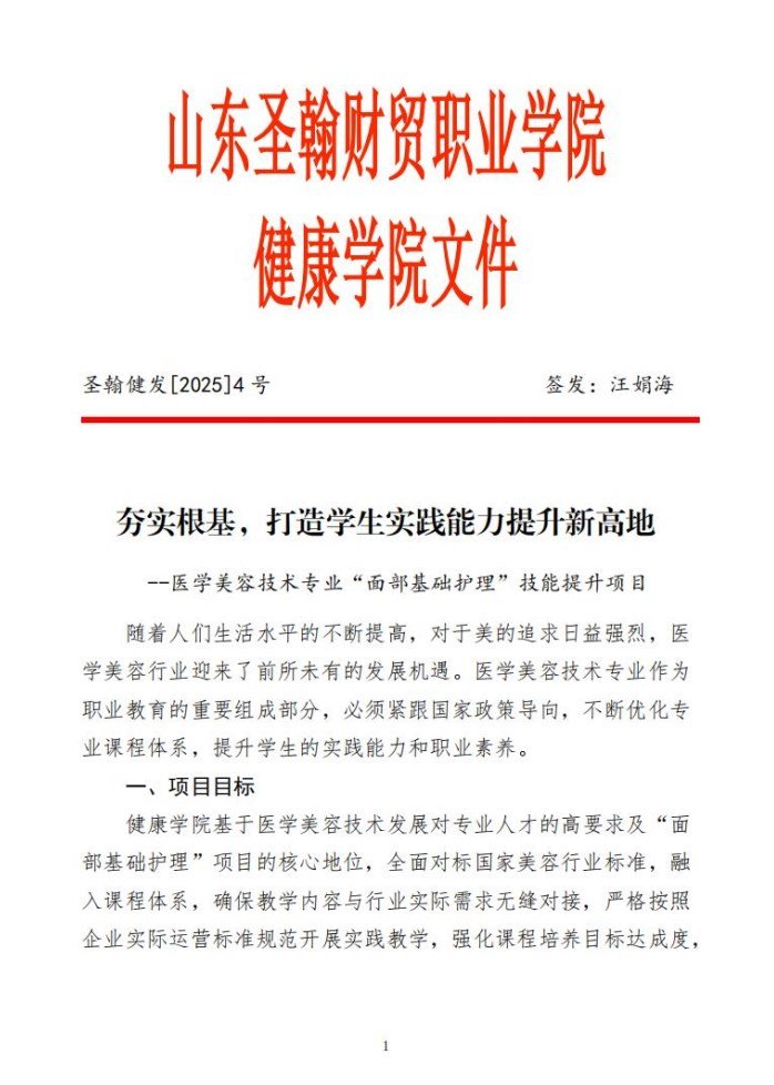 医学美容技术专业“面部基础护理”技能提升项目(圣翰健发[2025]4号)