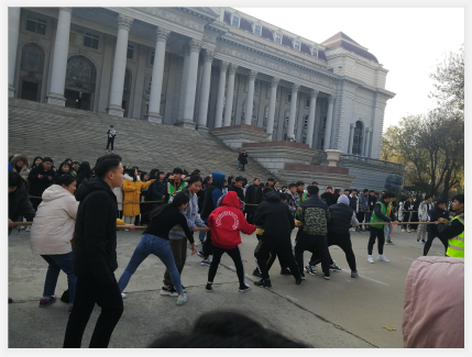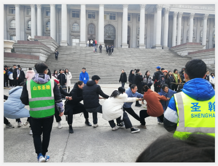 11月26日中午山东圣翰财贸职业学院在F楼前举行拔河比赛,有效地丰富了同学们的业余生活。