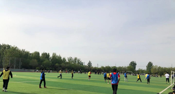 山东圣翰财贸职业学院足球比赛火热进行中,碧绿的草地上增添了许多活力的点缀。近日,健康学院对战艺术学院的足球比赛已圆满结束。比赛开始前,裁判宣读比赛规则,队员们斗志昂扬,精神抖擞,迫不及待地要开始比赛。有的队员并不会踢球,但是本着对足球的喜好和比赛的热情,他们也参与到了其中。