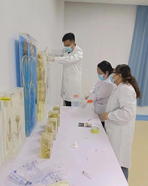 健康学院校内实训基地——医药实训中心大楼,楼内的30余间实训室分别承载着不同课程的实训教学任务。或许其他的实训室你不会过多注意,但是这个人体解剖实训室,不只是本专业的学生好奇,兄弟学院的学生也会来参观。不同的实训设备有不同的保养需求,那人体解剖实训室的“设备”要怎样保养呢?