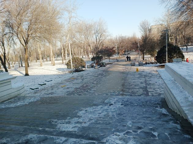 雪后结冰较多,学校在咏望楼、吉纯楼门口以及食堂等学生必经路段抛洒沙土等加快冰面融化,保障了同学们的安全出行。
