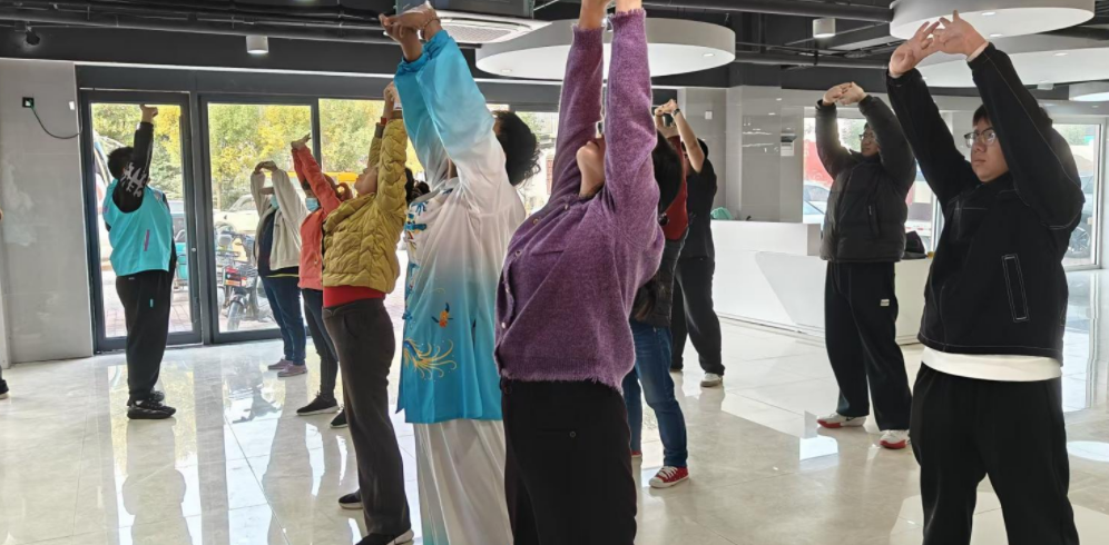 从“两手托天理三焦”的舒展抻拉,到“左右开弓似射雕”的劲力开合,志愿者们一对一纠正动作细节,帮助居民掌握每一式的要领。不少居民表示:“以前只在电视上看过八段锦,今天跟着同学们在现场学习,才知道这套功法看似简单,却能活动全身筋骨,太实用了!”